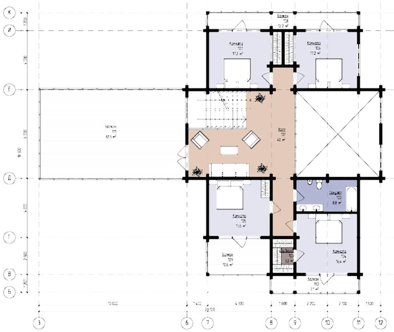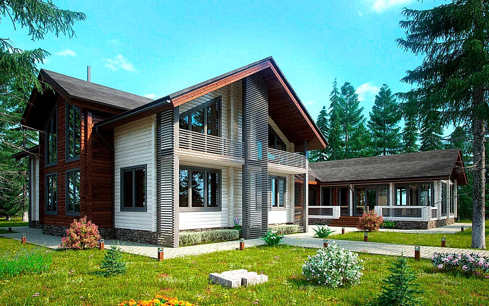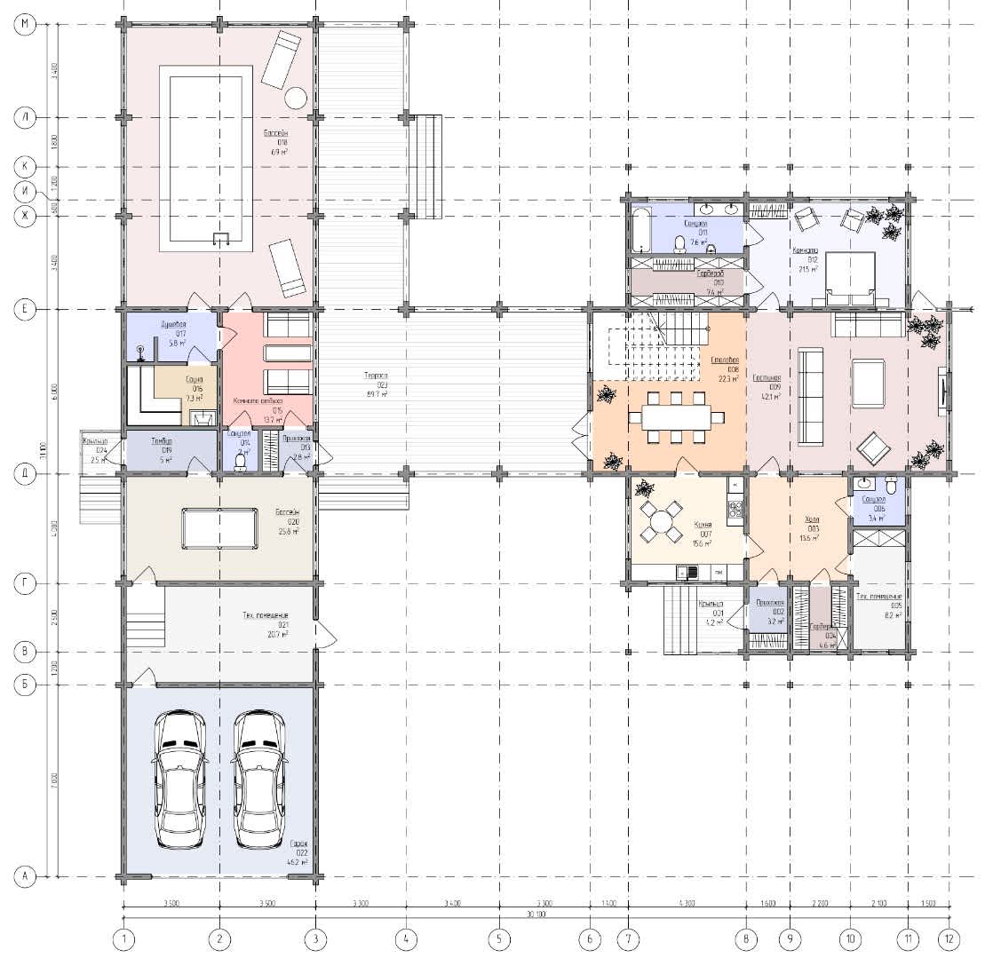 Двухэтажный частный дом на 654 квадратных метра Н-образной формы, выполненный в финском стиле, с бассейном и большой террасой. Правое крыло первого этажа включает в себя кухню, гостиную, столовую, 2 санузла, спальню, 2 гардеробные, прихожую и техническое помещение. Левое крыло предусматривает гараж на 2 автомобиля, тех. помещение, бильярдную, санузел, душевую, сауну, прихожую, комнату для отдыха и большой бассейн. Второй этаж: 3 просторные спальни, каждая со своим балконом, а также санузел, гардероб, холл, второй свет и огромный открытый балкон на 613 м2.