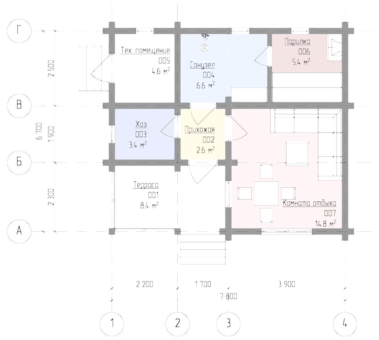 Банный комплекс «Эспо» - это отличная классическая баня с комнатой отдыха, общей площадью в 46 Pin Up метров. Простая квадратная форма здания делает его внутреннее пространство эргономичным и эффективным. Отличный выбор для любителей отдохнуть в «баньке».