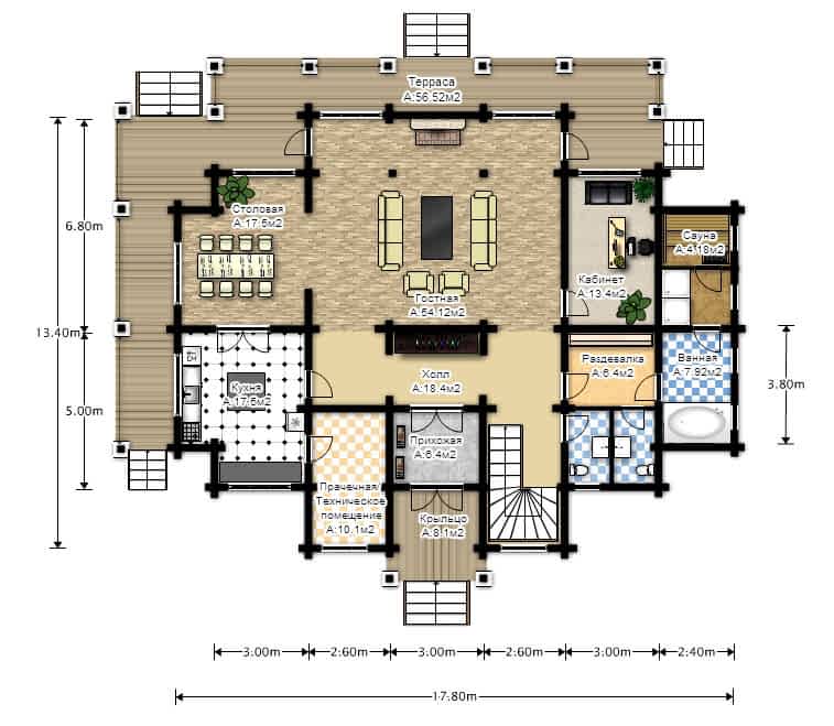 Большой двухэтажный дом «Камбоджа» под ключ, выполненный в скандинавском стиле с многоскатной крышей. Идеально подойдет для проживания большой семьи из 4-7 человек. На первом этаже расположена большая гостиная комната, кухня, столовая, 2 раздельных санузла и ванная, душевая, сауна, рабочий кабинет, прихожая, техническое помещение (можно оборудовать под прачечную), раздевалка, холл, лестница на второй этаж и просторная терраса. Второй этаж предусматривает 3 спальни (две со своим балконом), несколько гардеробных, 4 отдельных санузла с ванной или душевой кабиной на выбор и просторный холл. Также проект включает в себя второй свет