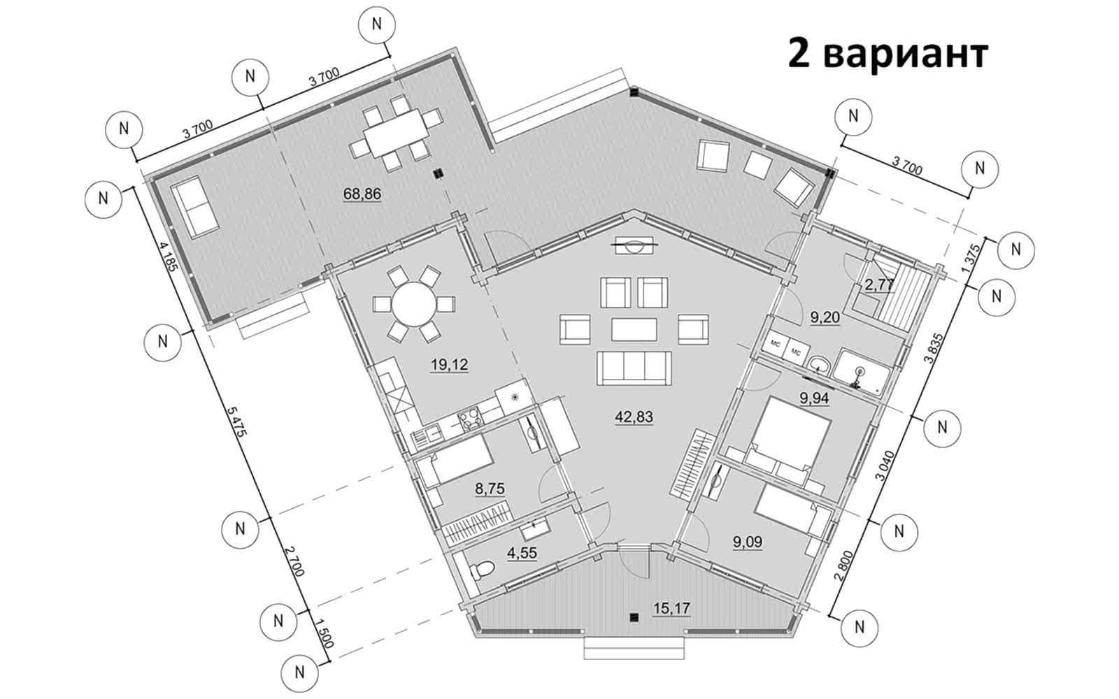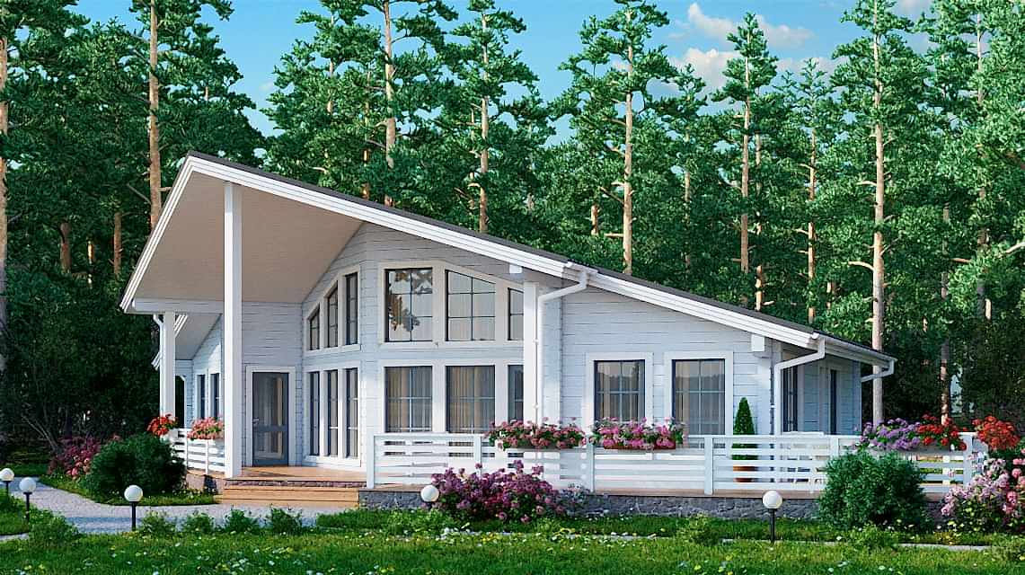 Просторный двухэтажный коттедж 175 м2V-образной формы, Pin Up в скандинавском стиле.