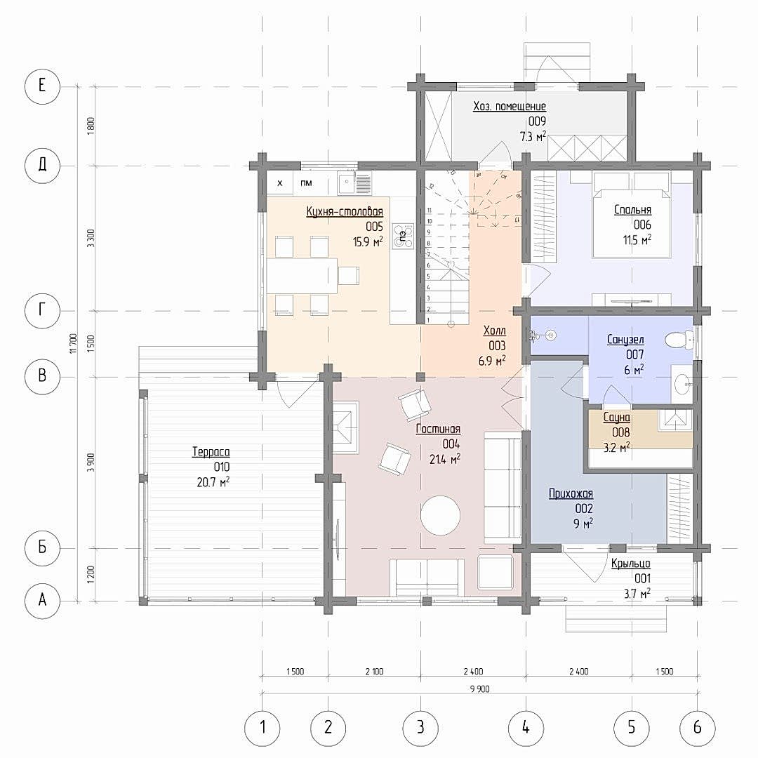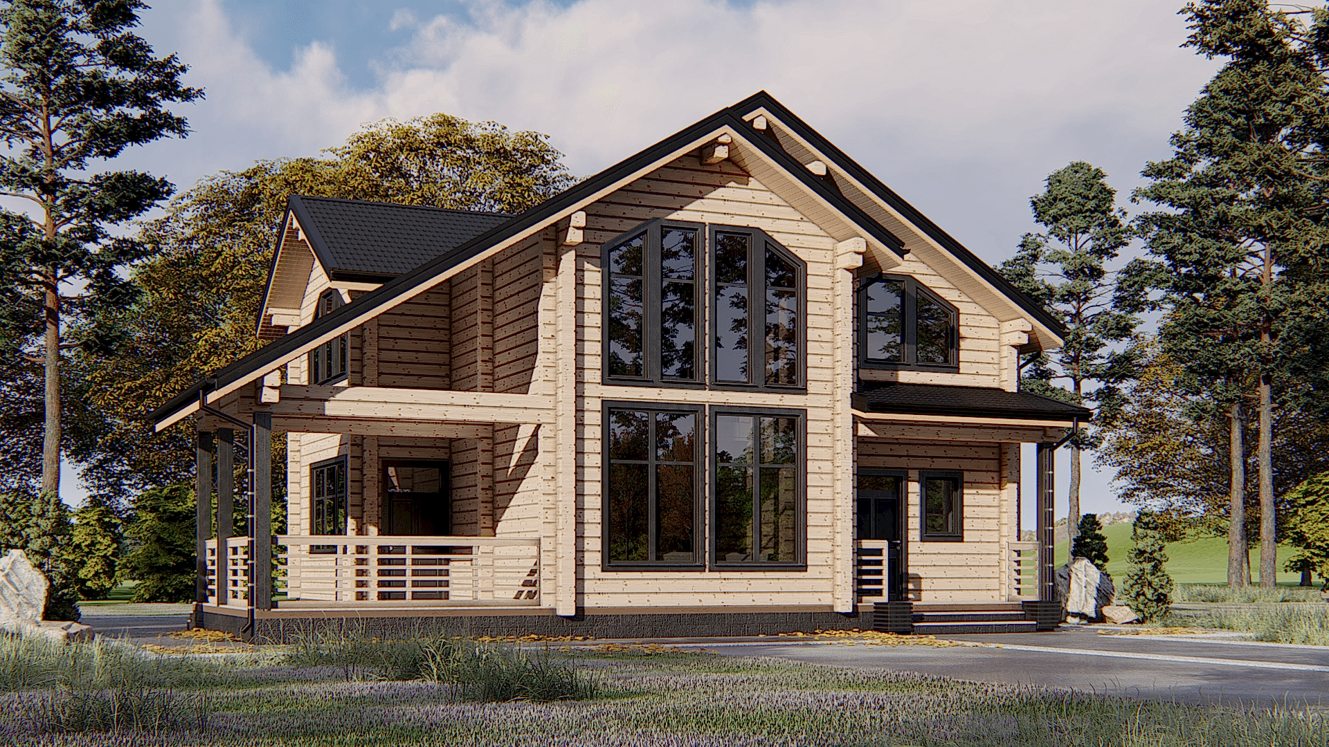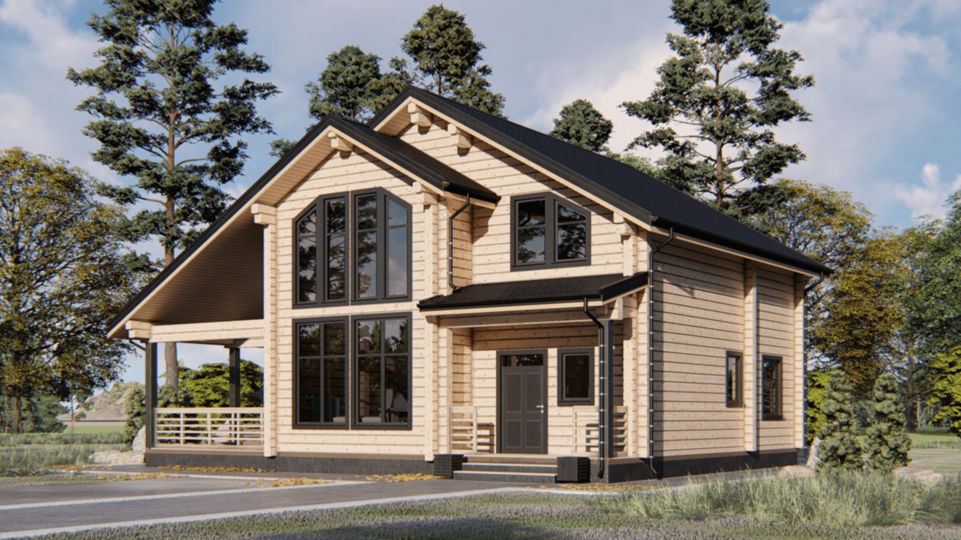 Компактный двухэтажный загородный дом на 164 квадратных метра со вторым светом и отличным современным дизайном. Первый этаж оснащен двумя входами: с террасы и через техническое помещение, включает в себя кухню-столовую, гостиную, холл, спальню, санузел, прихожую и крыльцо. Отличительной особенностью является наличие в планировке сауны. Второй этаж это - 2 спальни, большой холл, второй санузел и комфортное помещение, которой можно оборудовать под кабинет.