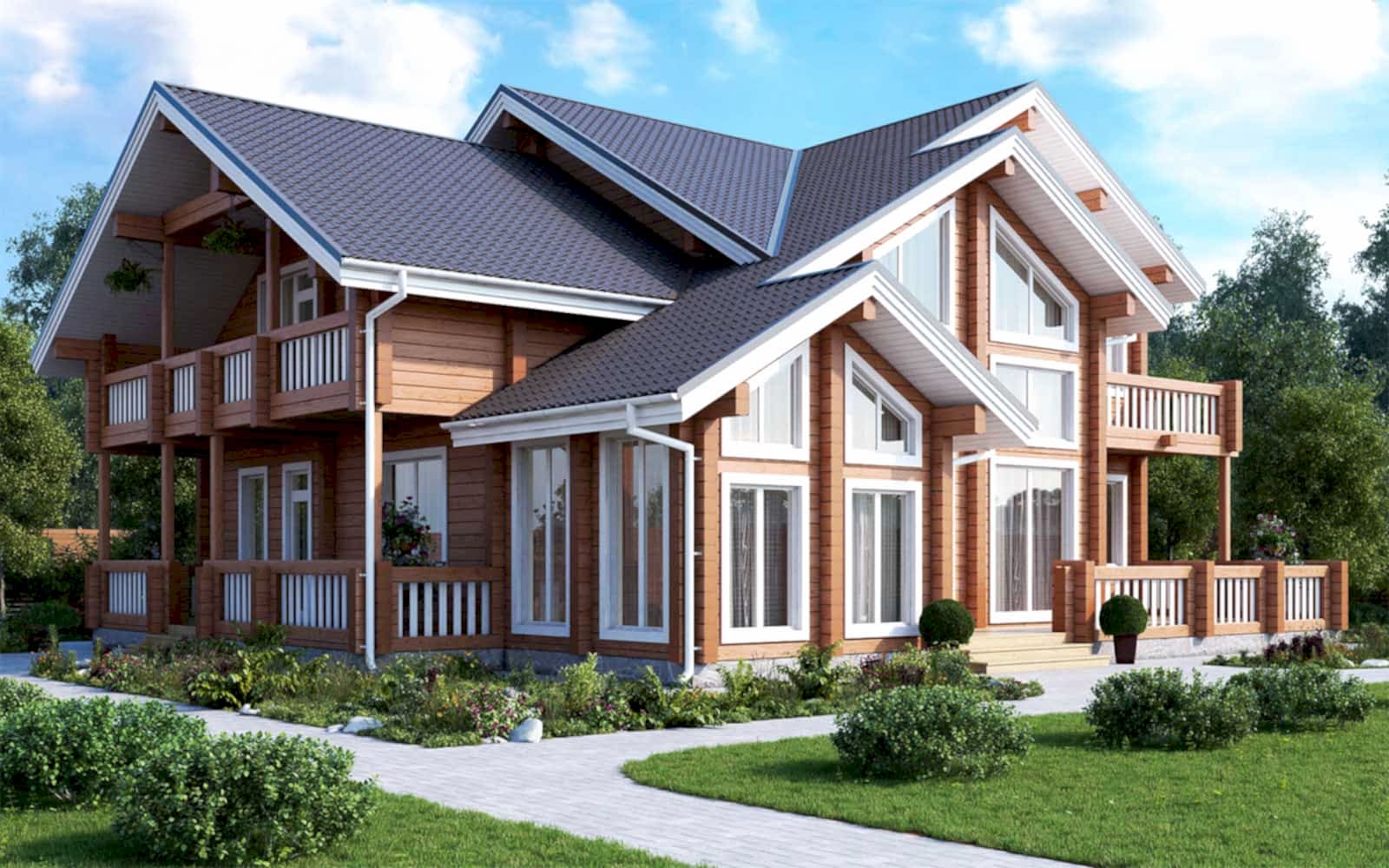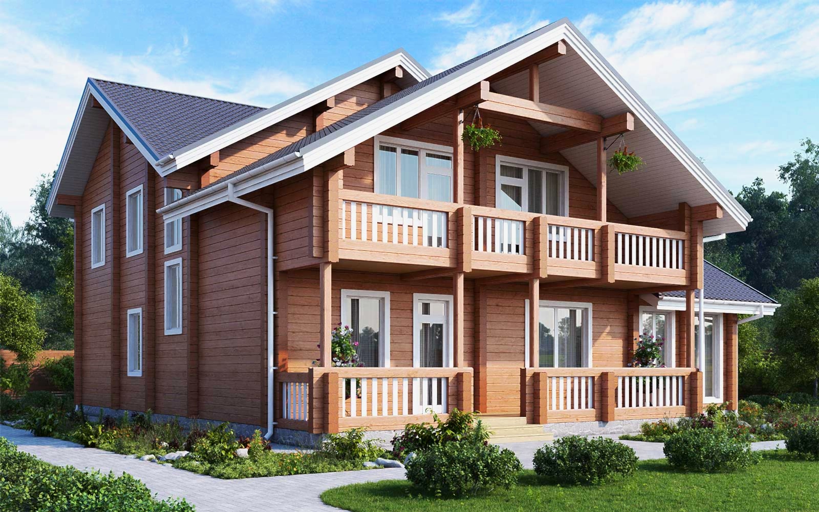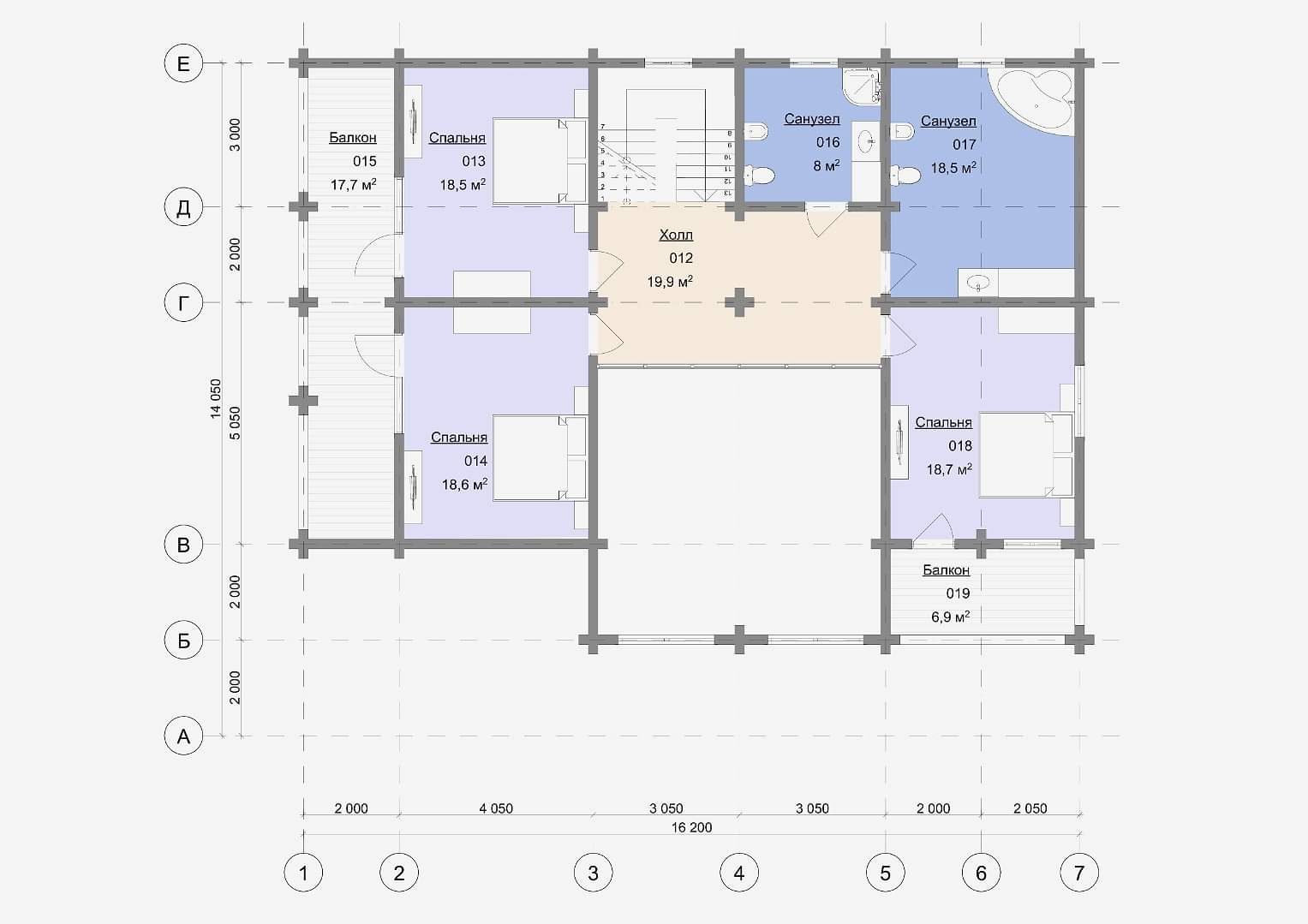 Второй этаж: 3 спальни, каждая из которых имеет свой балкон, санузел, холл и пространство для второго света.
