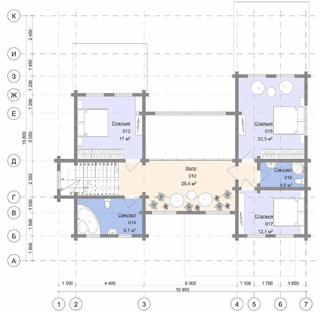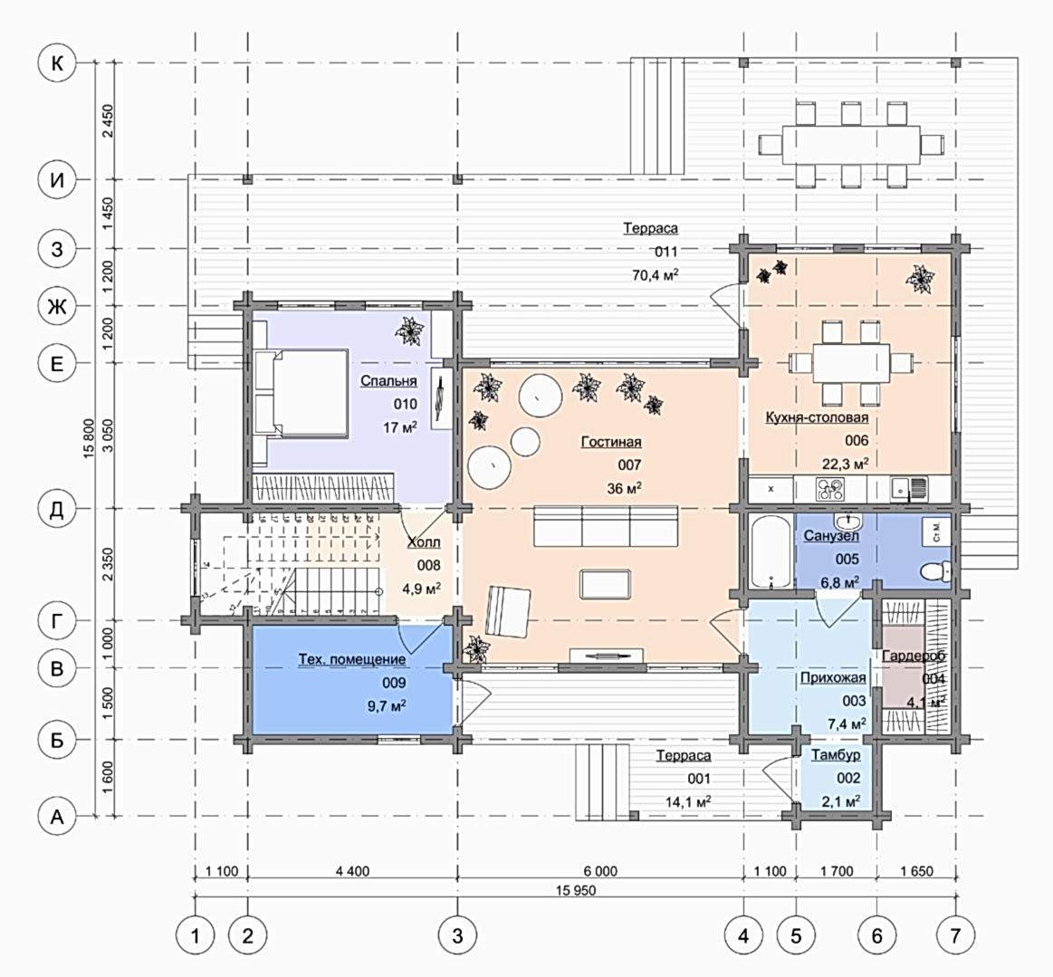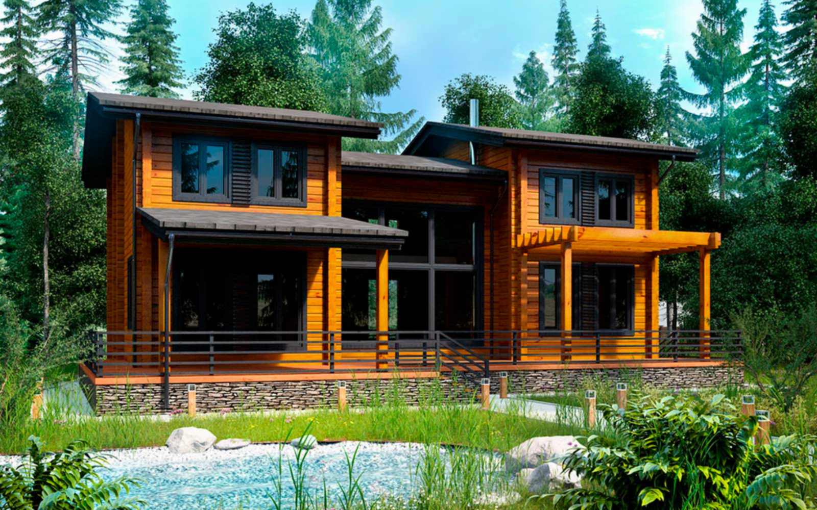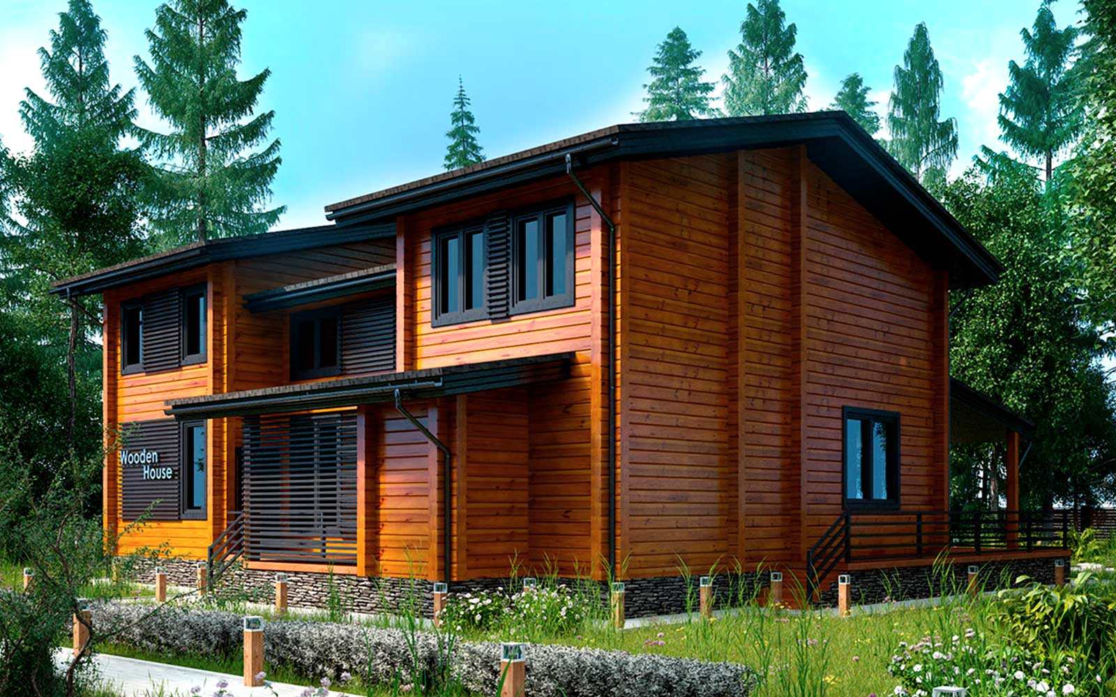 Двухэтажный частный дом, выполненный в скандинавском стиле с двускатной крышей. Первый этаж включает в себя кухню-столовую, гостиную, спальню, тамбур, холл, прихожую, техническое помещение и санузел. Также здание имеет 70-метровую террасу и 3 входа. На втором этаже - три спальни, 2 санузла и холл.